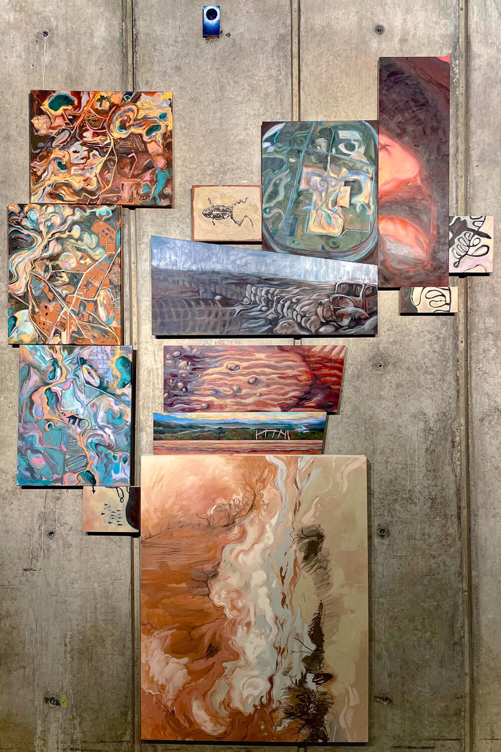 I'm Sarah! I'm a 23 year old artist from Bucks County, Pennsylvania and recently graduated from the Stamps School of Art and Design at the University of Michigan (BFA '24). I mainly create pottery, oil paintings, ceramic mosaics and sculptures, all with a deep consideration for the impacts of my art practice on the health of the environment. I utilize repurposed materials like ceramic glaze waste, wood scraps, broken pottery, and paper whenever possible in my artwork. I also work with natural, foraged materials such as wild clays, plant ashes, and crushed rock specimens in some of my sculptural ceramic mosaics. My work is heavily inspired by the natural world and carries through my deep adoration for the earth and its stories through deep time up to the present moment. My love of traveling around the country by RV fuels my landscape-painting and wild clay glaze-making. My paintings depict moments I have lived in places I have visited; my sculptural wild clay ceramics are tied to the geology of the landscape through material, which is therefore, inherently present in the work. Please contact me with any questions you may have about my work! :)